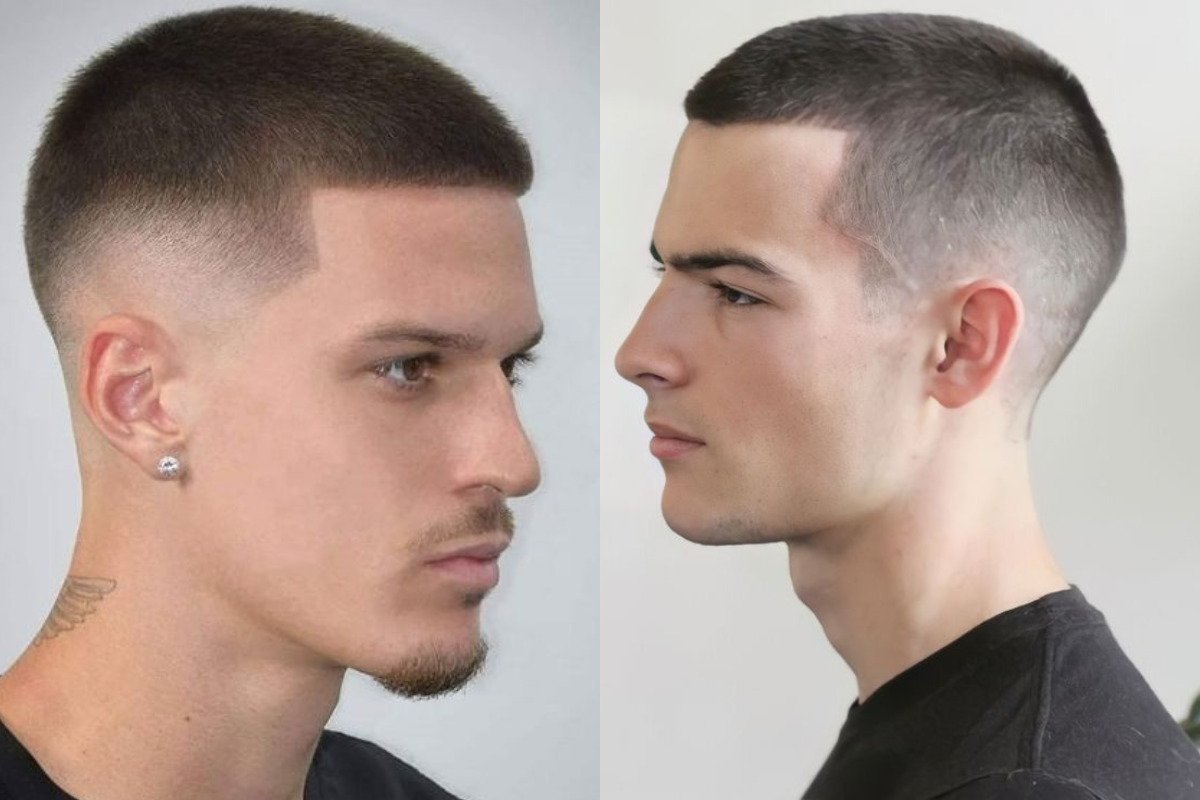 Buzz Cut là kiểu tóc tối giản tuyệt đối – cạo sát toàn bộ đầu với tông đơ #1 đến #3, tạo độ dài đồng đều 3-10mm. Có thể cắt đều khắp đầu hoặc kết hợp fade nhẹ để tạo chiều sâu. Phong cách “alpha male” này toát lên sự tự tin, mạnh mẽ và quyết đoán. Lưu ý: Buzz Cut đòi hỏi gương mặt đẹp với xương hàm rõ nét vì không có tóc che khuyết điểm. Ưu điểm lớn là zero maintenance – tiết kiệm tối đa thời gian và chi phí.
