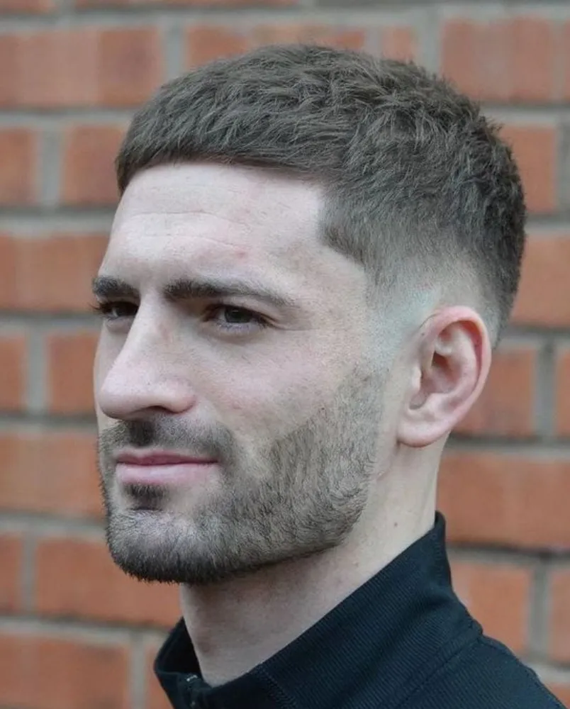 French Crop mang phong cách minimalist đặc trưng của châu Âu với tóc ngắn đều khắp đầu, điểm nhấn là mái cắt ngang thẳng hoặc texture tự nhiên. Phần trên thường dài 2-4cm, mái ngắn che trán, hai bên kết hợp Fade hoặc cắt ngắn gọn gàng. Kiểu tóc này cực kỳ thực dụng, ít tốn thời gian tạo kiểu mỗi sáng nhưng vẫn trông hiện đại và chuyên nghiệp. Đặc biệt phù hợp với nam giới yêu thích sự đơn giản, không cầu kỳ.
