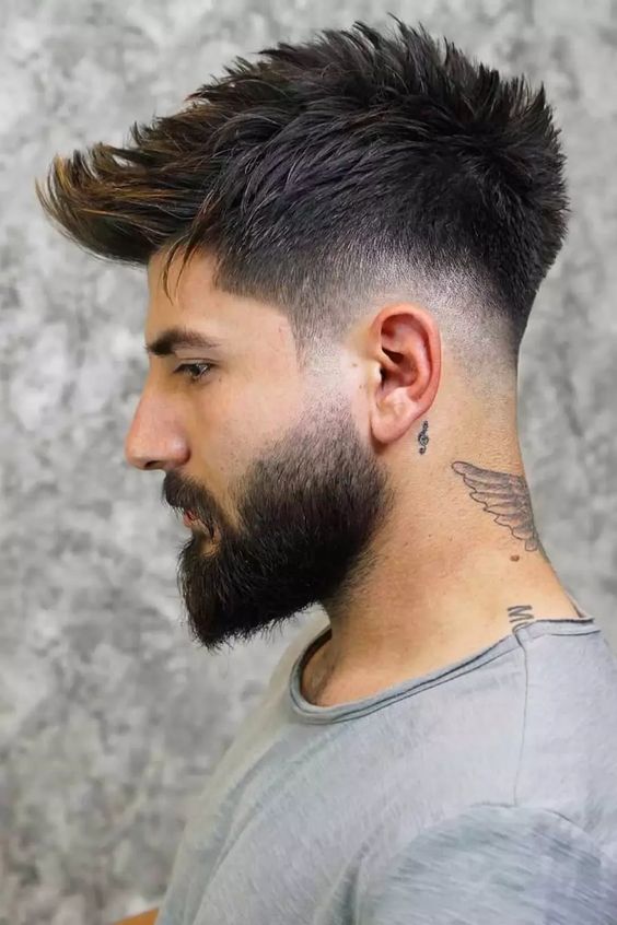 Faux Hawk là phiên bản “văn minh hóa” của Mohawk cổ điển. Phần giữa đầu được tạo độ cao nổi bật, trong khi hai bên được cắt Fade thay vì cạo trọc hoàn toàn. Kiểu tóc này cân bằng hoàn hảo giữa phong cách edgy và tính chuyên nghiệp, cho phép bạn thể hiện cá tính mà vẫn phù hợp với nhiều môi trường làm việc hiện đại. Dễ tạo kiểu với gel hoặc wax, vuốt phần giữa lên cao và hơi nghiêng về một bên.