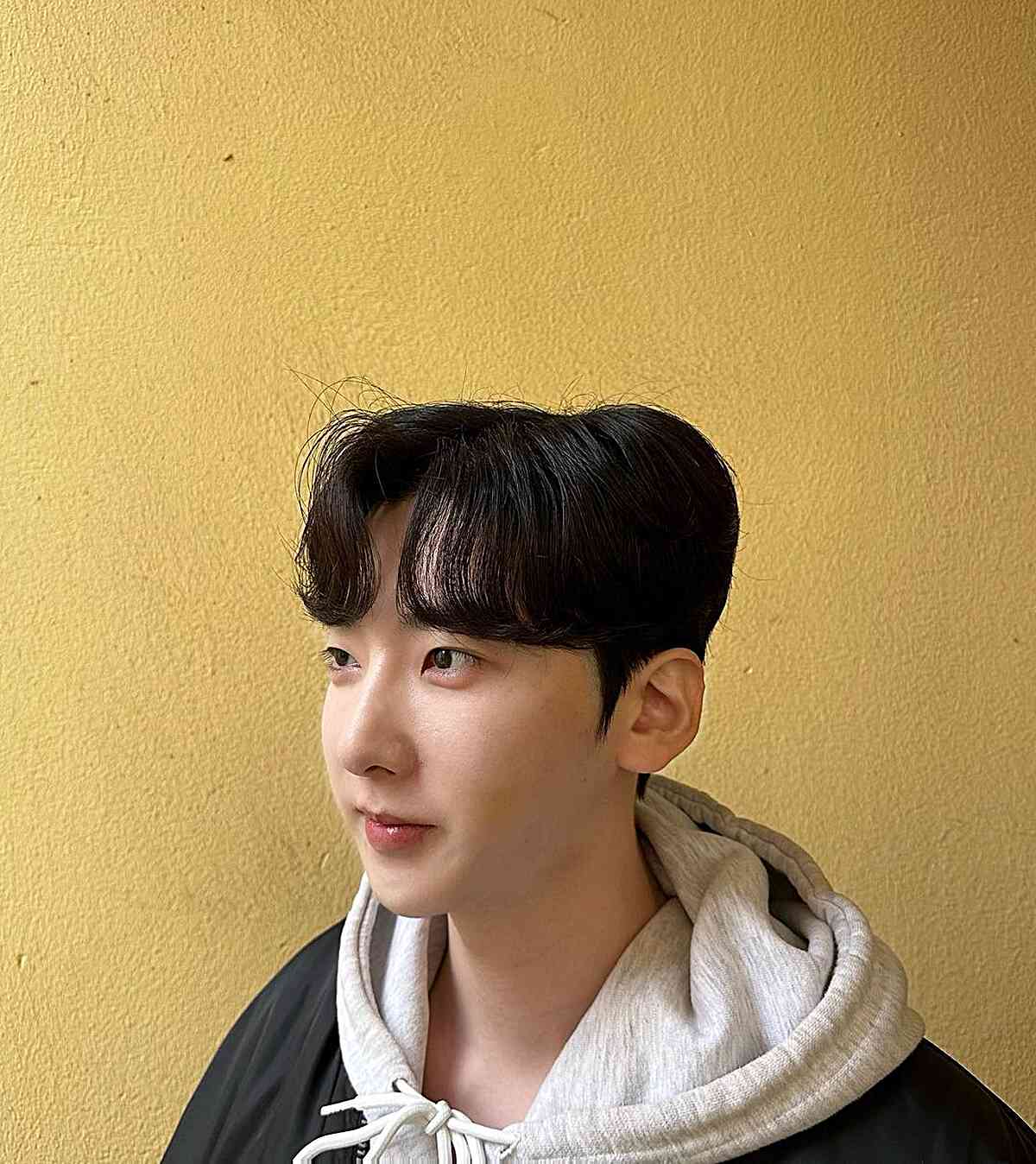 Two-Block xuất phát từ Hàn Quốc, tạo “2 khối” rõ rệt với phần trên dài và phồng (5-8cm), hai bên cắt ngắn tạo độ tương phản. Điểm khác biệt so với Undercut là Two-Block mềm mại hơn, mái để dài che trán, chải tự nhiên hoặc có texture nhẹ. Phong cách này thể hiện nam tính kiểu Á Đông – thanh lịch, trendy nhưng không quá cá tính. Đây là kiểu tóc được giới trẻ Việt Nam yêu thích nhất hiện nay, phổ biến ở học đường và môi trường trẻ.